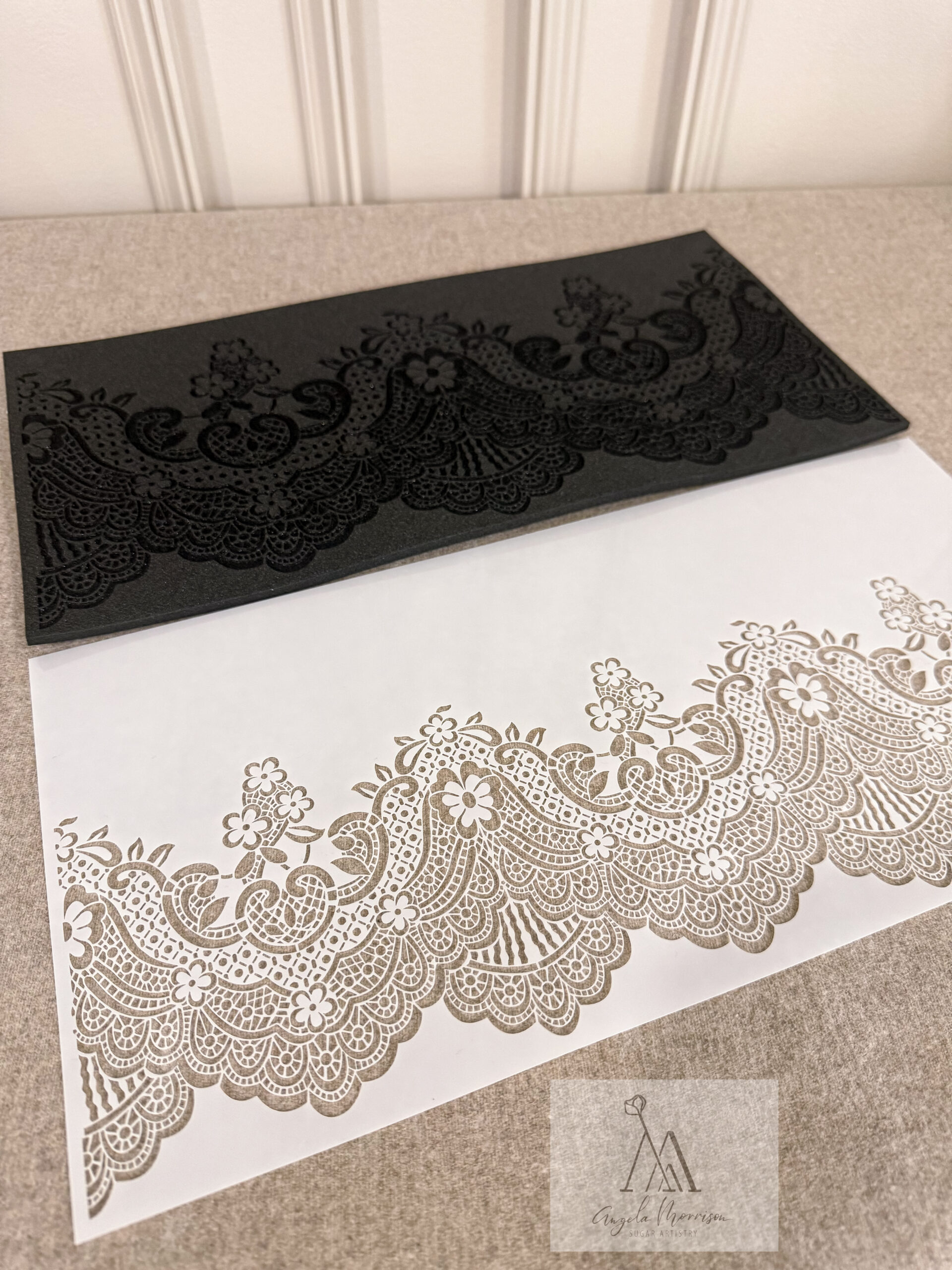 Inspired by a wedding dress veil, this lace stencil was crafted to press beautifully into buttercream. It gives your cakes a soft, romantic lace texture that looks hand-piped, but takes only seconds to achieve. Perfect for dreamy wedding cakes and elegant tiers.